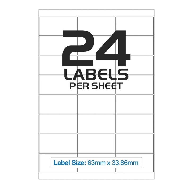 Standard Label Size: Each label measures 63.5 x 33.9mm, ideal for addresses, barcodes, and product labels