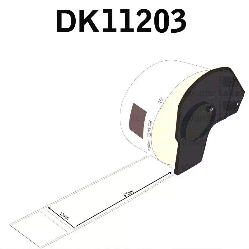 Brother Compatible Labels DK-11203, designed to work perfectly with your Brother P-touch label printer. Each label measures 17 x 87mm, providing a versatile size for a wide range of labeling needs – from office documents to home storage solutions.Made with premium quality materials and a strong adhesive, these labels stick securely to most surfaces without fading, peeling, or curling over time. With 400 labels per roll, you’ll have enough to label everything efficiently, making it ideal for both professional and personal use.Compatible, reliable, and easy to use, the DK-11203 label rolls are your go-to solution for neat and precise labeling